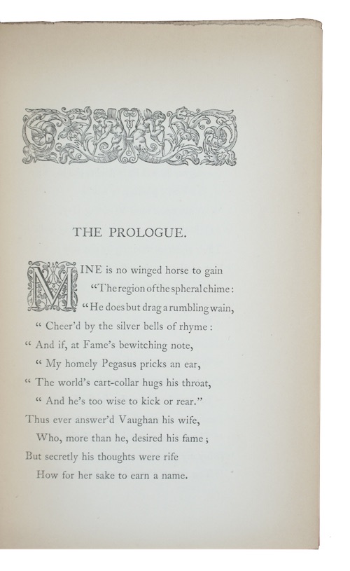 The first edition of poet and essayist Coventry Patmore's (1823-1896) celebrated Romantic verse reminiscing on the courtship of his first wife; a companion work, which eulogised her, The Angel in the house: the espousals, appeared in 1856.