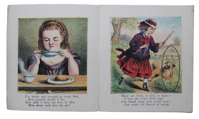 An apparently unrecorded, attractively illustrated, seven-stanza poem celebrating - from the perspective of a young girl - the joys of family, good health, and Christian devotion.