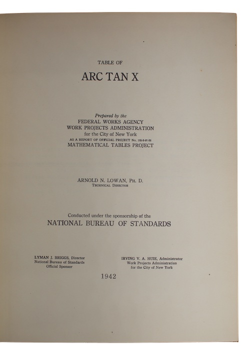 The first edition of a comprehensive inverse trigonometric table published by the Mathematical Tables Project of the Work Projects Administration - an organisation founded during the Depression era with the sole remit of creating mathematical tables.