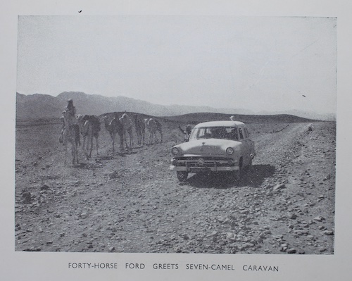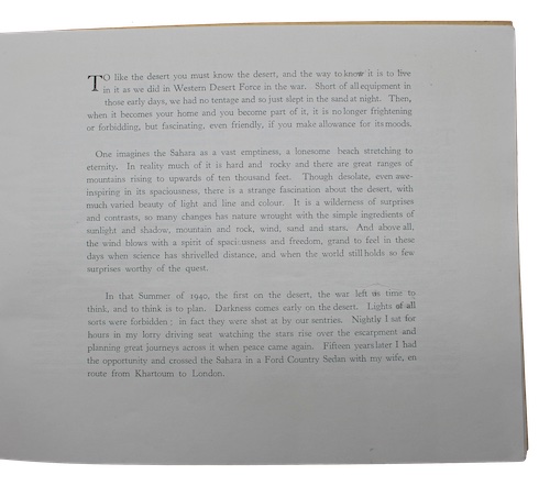 A rare survival of a succinct memoir of a 7,500 mile journey across the Sahara en route from Khartoum to London in a Ford 1954 Country Sedan. The author, Ronald Keymer, the managing director of the Associated Sudan Mercantile Motors Company, undertook the expedition with his wife in 1955.
