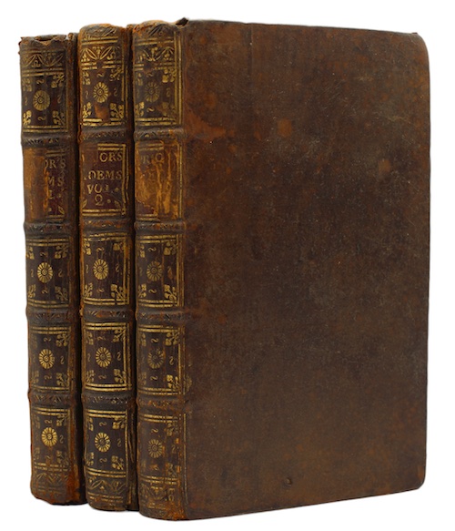 [Uniformly bound with:] [PRIOR, Matthew]. Poems on Several Occasions...Volume III. London. [s.n.], 1727. Second edition. [8], xii, [2], 48, 47-70, 73-129, [1]; [8], 54pp, [2]. With an engraved portrait frontispiece. ESTC T75647.