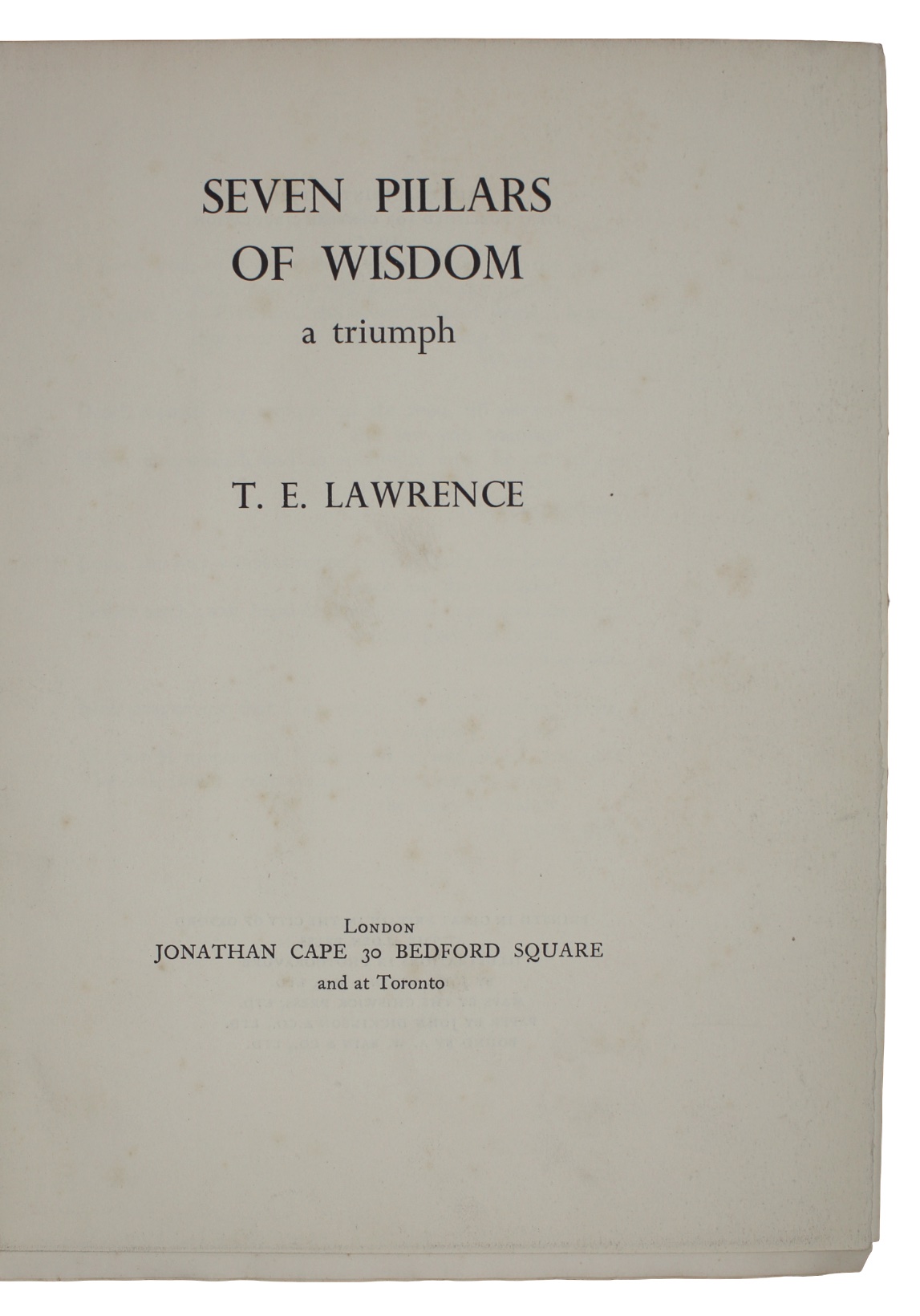 The First Trade edition (and third proper English edition) of Lawrence of Arabia's magisterial account of the Arab Revolt during the First World War.
