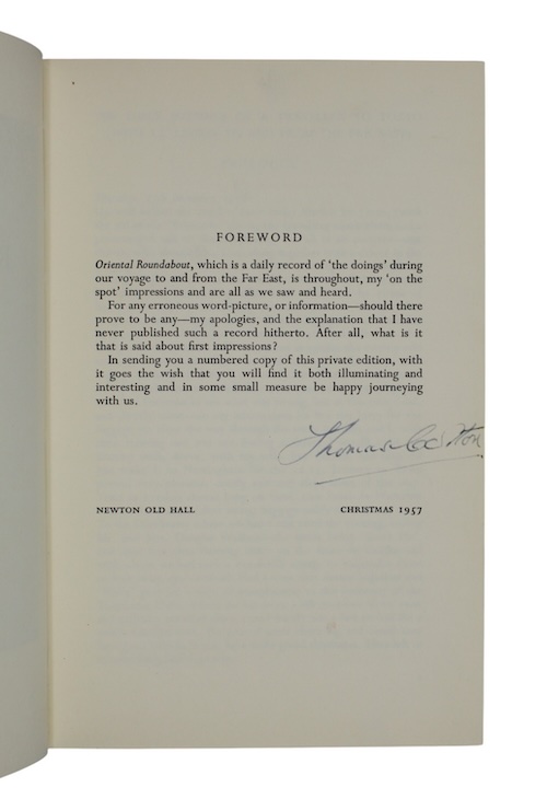 The limited edition, printed for private circulation, of a daily record of the voyage of the P&O cruise ship SS Chusan from England to Japan, via, inter alia, Cape Town, Bombay, Singapore, and Hong Kong.