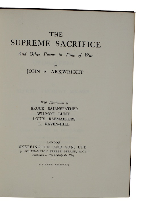 John Stanhope Arkwright (1872–1954), was a British Conservative politician, barrister, and poet. He attended Christ Church College, Oxford, where he was awarded the Newdigate Prize for poetry, resulting in this volume. He is best remembered for penning the WWI Hymn 'O Valiant Hearts'.