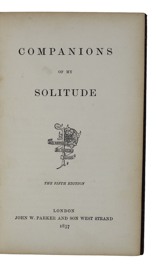 A handsomely bound copy of a selection of pastoral and religious reflections by public servant and author Sir Arthur Helps (1813-1875), first published in 1851.