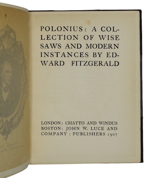 An early twentieth century edition of Edward Fitzgerald's (1809-1883) second published work, a collection of witty aphorisms taken from the works of other authors, first published in 1852.