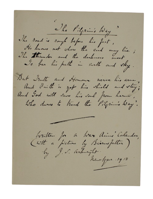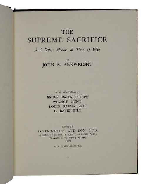 John Stanhope Arkwright (1872–1954), was a British Conservative politician, barrister, and poet. He attended Christ Church College, Oxford, where he was awarded the Newdigate Prize for poetry, resulting in this volume. He is best remembered for penning the WWI Hymn 'O Valiant Hearts'.