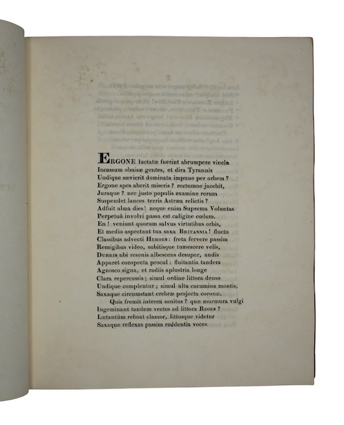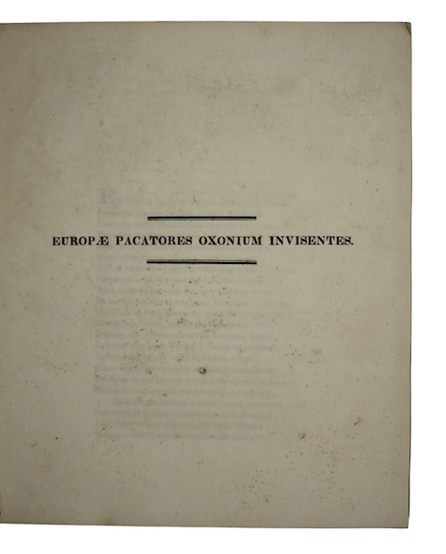 A rare survival, in original state, of the sole edition of a neo-Latin verse composed by biblical scholar Edward Greswell (1797-1869) whilst an undergraduate of Brasenose College, Oxford, upon the occasion of the visit of the allied sovereigns of Europe to the university following the signing of the Treaty of Paris.